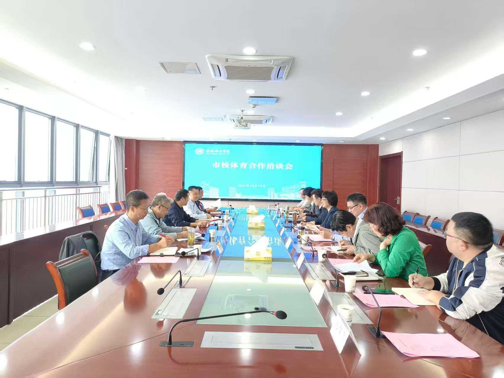10月15日上午,合肥市体育局局长余勇一行来我院,就深化市校体育合作开展专题洽谈。院党委副书记、院长方东玲,院党委委员、副院长周端明,以及双方相关部门负责人参会,会议由方东玲主持。