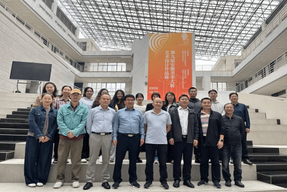 导览过程中,师生们跟随党员教师的导览,凝神驻足观摩每一件作品,从构思精巧的视觉海报到充满智慧的产品设计,从蕴含文化叙事的服饰作品到科技感十足的数字媒体艺术,沉浸式领略艺术设计的魅力。师生们围绕设计服务生活、艺术呼应时代等话题积极互动,现场气氛活跃融洽。在环境设计作品版块,观展师生聚焦民宿、景观、展馆及办公空间等人居环境作品,通过空间语言感受功能布局与人文思想的交融;在产品设计作品版块,人性化功能与美学表达的设计作品让观展师生体会到设计如何提升实用价值与情感体验;在服装与服饰设计作品版块,师生们纷纷驻足感知作品对徽文化与传统图案的现代转译,以及作品蕴含的文化传承与时尚张力;在视觉传达设计版块,师生们观摩以安徽地方文化为核心的文创、书籍及品牌设计,感悟地域文化的视觉特征与精神内涵。一幅幅作品以设计为媒介成为美育浸润的生动载体。