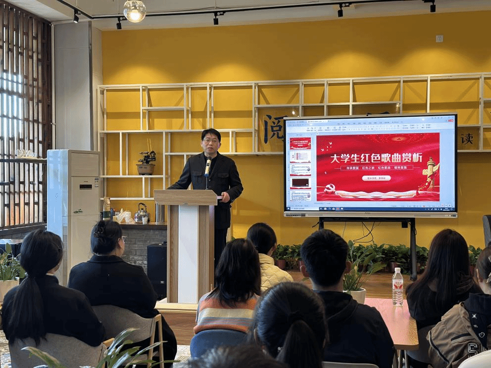 10月22日,锦绣校区“阅+历”读书讲堂“人文十讲”第二讲由中国音乐家协会会员、世界音乐学会会员、我校音乐学院院长李劲松教授为同学们作主题为“红色经典歌曲传唱与赏析”分享。本次讲座由校阅读推广人、音乐学院教师江楠主持。