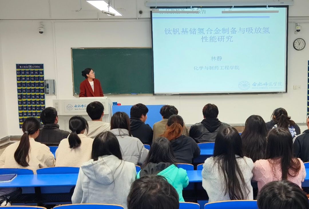 10月22日下午,化学与制药工程学院林静博士作了题为“钛钒基储氢合金制备与吸放氢性能研究”的学术报告,校内部分师生聆听了报告。报告围绕国家“双碳”战略背景下的氢能发展需求,系统介绍了储氢合金材料的研究进展与团队最新成果,引发了师生对新能源技术发展的深入思考。