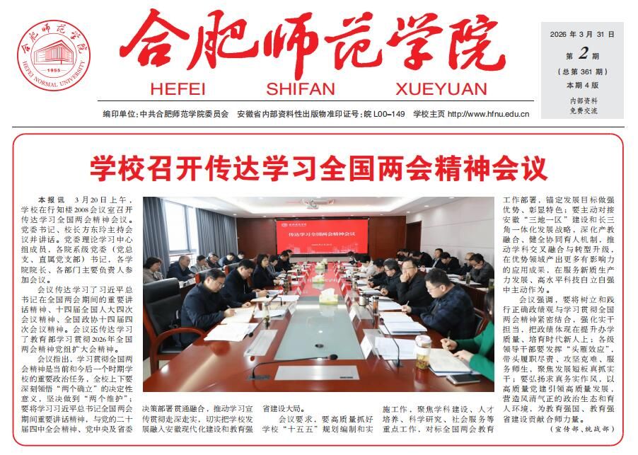 1956年,进修学院经历合并分流的重大调整。以进修学院原有师资、校舍、资产等为基础,独立设置合肥师范专科学校,并由时任进修学院院长张兆甲出任首任党委书记兼校长,以加速普高教育。新成立的合肥师范专科学校最初设有中文、史政、数学、物理、生物五个学科及教育学科教研室、体育教研室,学生785人,教师143人,职工152人。