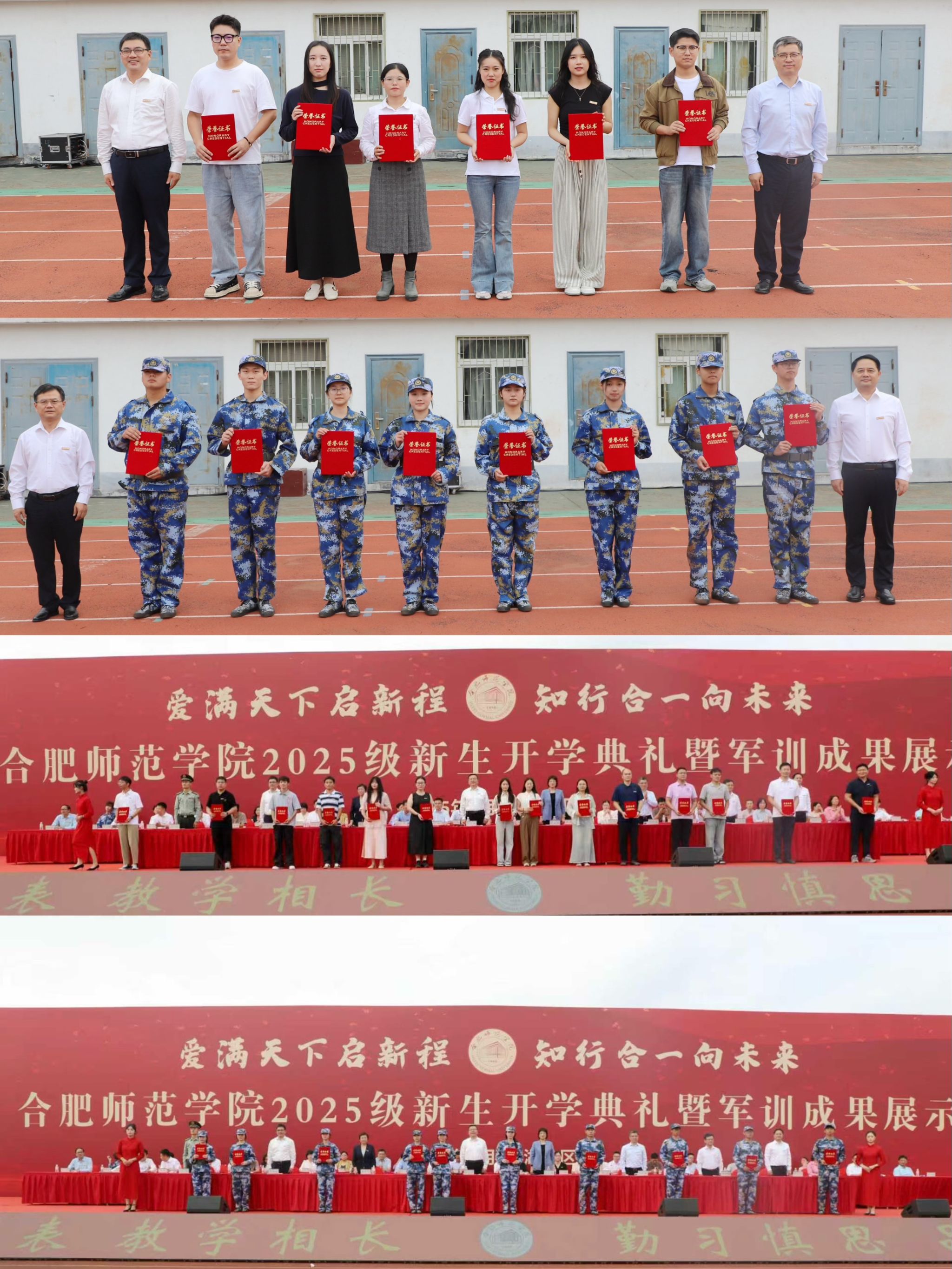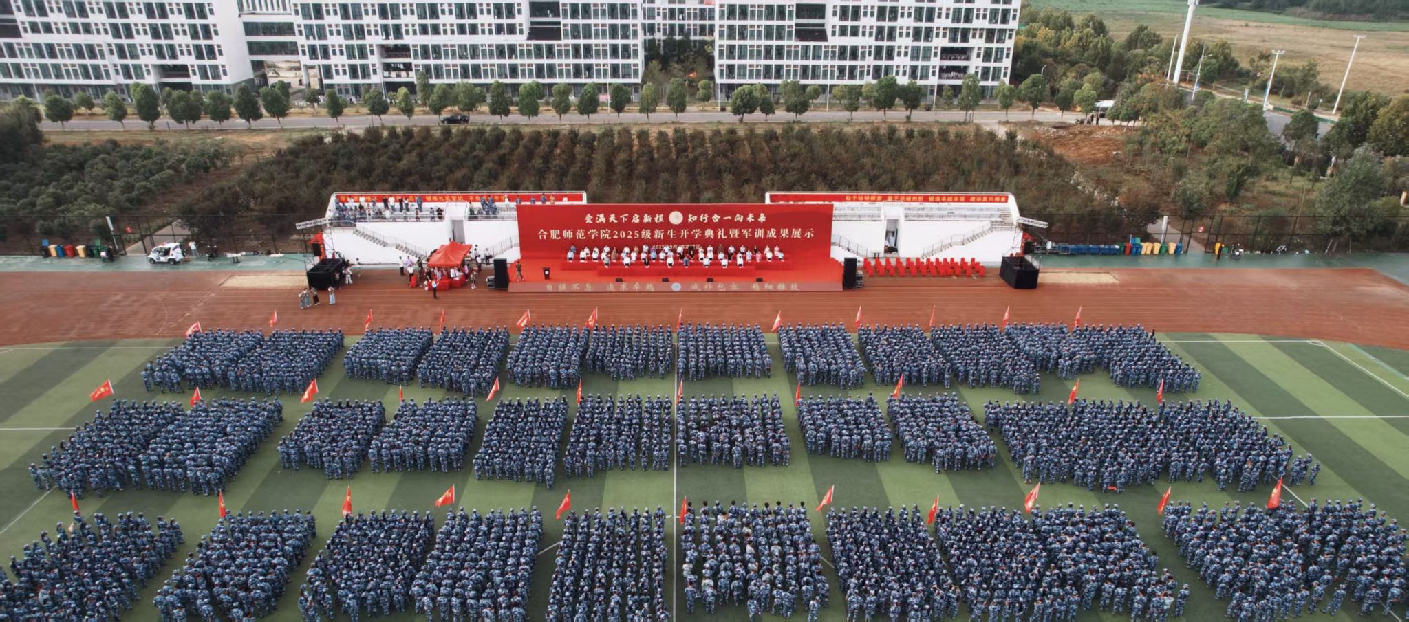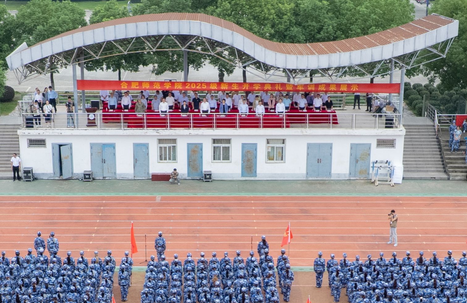 开学典礼暨军训成果展示在激昂的《合肥师范学院校歌》歌声中圆满结束。(党政办、宣传部、学生处、滨湖办、后勤处)