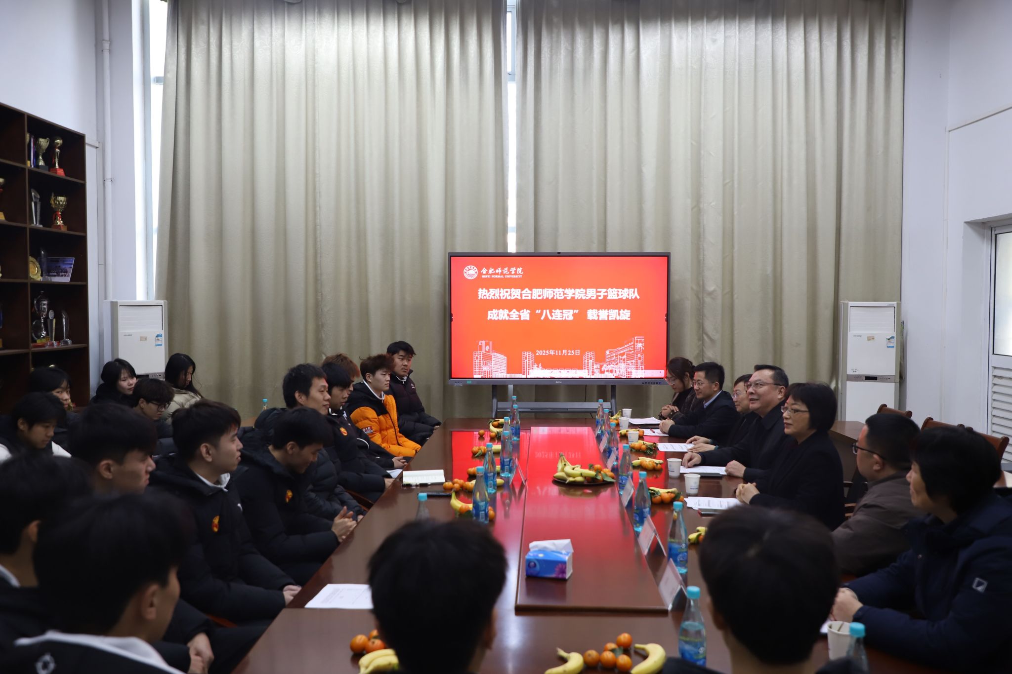 方东玲热烈祝贺篮球队载誉归来。她指出,队员们在赛场上展现出的拼搏精神和卓越风采,是全校的骄傲与学习的榜样。学院为你们感到自豪,也将一如既往地做你们坚强的后盾。她希望大家继续保持昂扬斗志,在未来比赛中再传捷报!