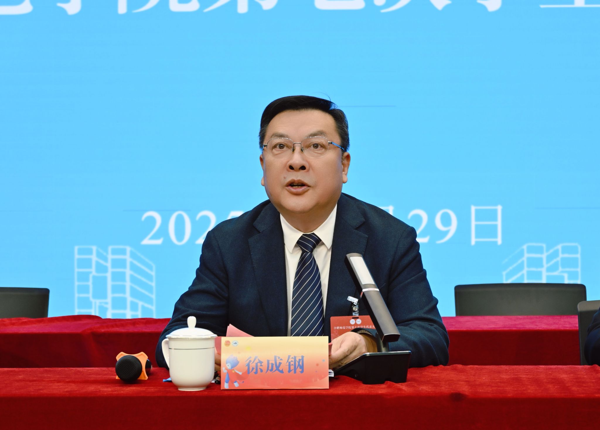 徐成钢代表学院党委向大会的胜利召开表示热烈祝贺,向全体代表和全校广大青年大学生致以亲切的问候。他高度肯定了一年来学院青年学生工作及学生会工作取得的成绩,并向同学们提出三点希望:要筑牢信仰根基,在青春逐梦中厚植爱国情怀;要弘扬奋斗精神,在知行合一中勇担时代使命;要敢于开拓创新,在追梦筑梦中勇立时代潮头。他希望学院各级党组织和各单位、部门认真落实习近平总书记重要讲话精神,要加强对青年工作的领导,大力支持青年和学生会工作。各级党组织要进一步关心和指导学生会相关工作,要推动学生会组织作风建设、规范工作机制、深化改革创新。学生会等各级学生组织要牢记全心全意为同学服务的宗旨,团结引导青年学生加强思政引领,练就过硬本领,不断增强政治性、先进性、群众性,不断夯实永远跟党走、奋进新征程的坚实基础,团结带领广大同学,在学院高质量发展的赛道上唱响激昂嘹亮的青春之歌,为学院早日实现更名大学奋斗目标贡献青春力量,不断书写为中国式现代化挺膺担当的青春篇章。