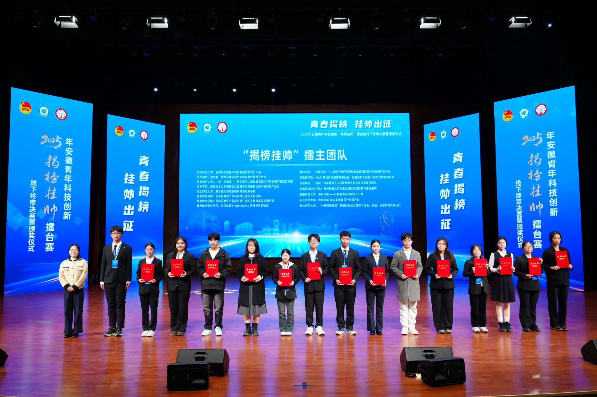 12月7日至8日,由共青团安徽省委员会主办的安徽省“挑战杯”揭榜挂帅专项赛线下终审复赛在安徽交通职业技术学院举行,学院突破性取得省赛一等奖3项(全省共55项),其中包括“擂主”团队2项(全省共25项)。