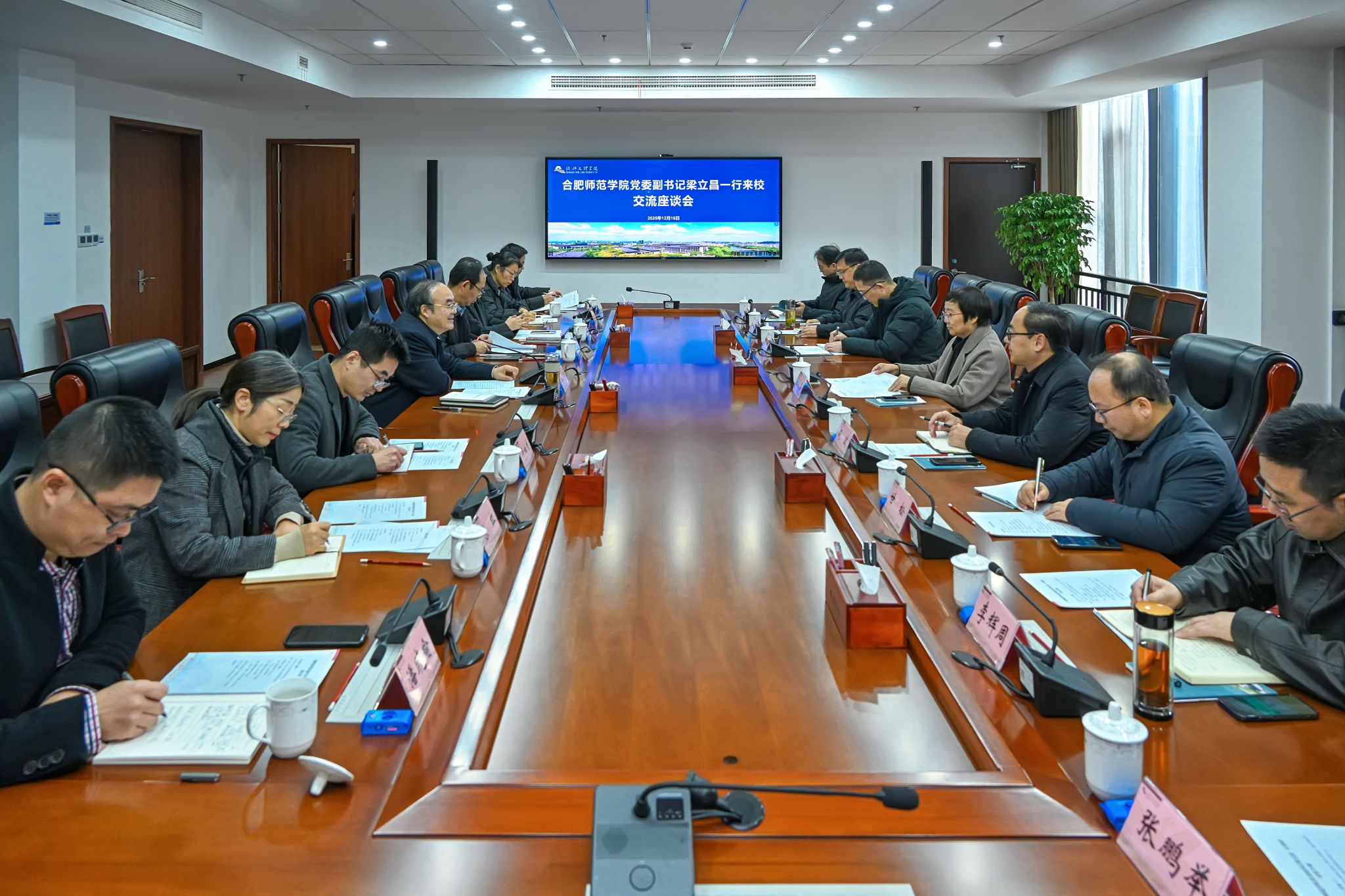会上,黄坚对梁立昌一行的来访表示欢迎,并对学校的历史沿革、办学定位和特色实践进行了具体介绍。他表示,两校发展有诸多共同点,合作前景广阔,期待通过此次干部交流进一步深化互学互鉴、促进共同发展。