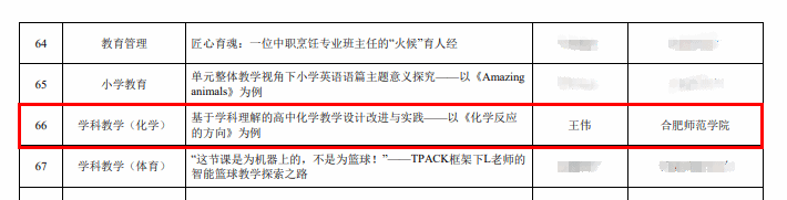 近日,全国教育专业学位研究生教育指导委员会公布了第七届教育专业学位教学案例征集工作评审结果,我校化学与制药工程学院王伟老师主持撰写的教学案例《基于学科理解的高中化学教学设计改进与实践——以<化学反应的方向>为例》通过评审,并被推荐至教育部学位与研究生教育发展中心申请入库,这是我校持续推进教育专业学位案例建设工作取得的又一重要成果。