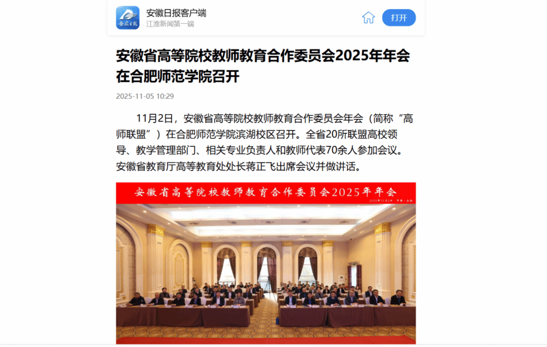 安徽日报报道《省高校教师教育合作委员会2025年年会在合肥师范学院召开》