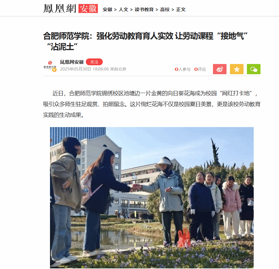 凤凰网报道我校把陶行知教育思想有机融入劳动教育