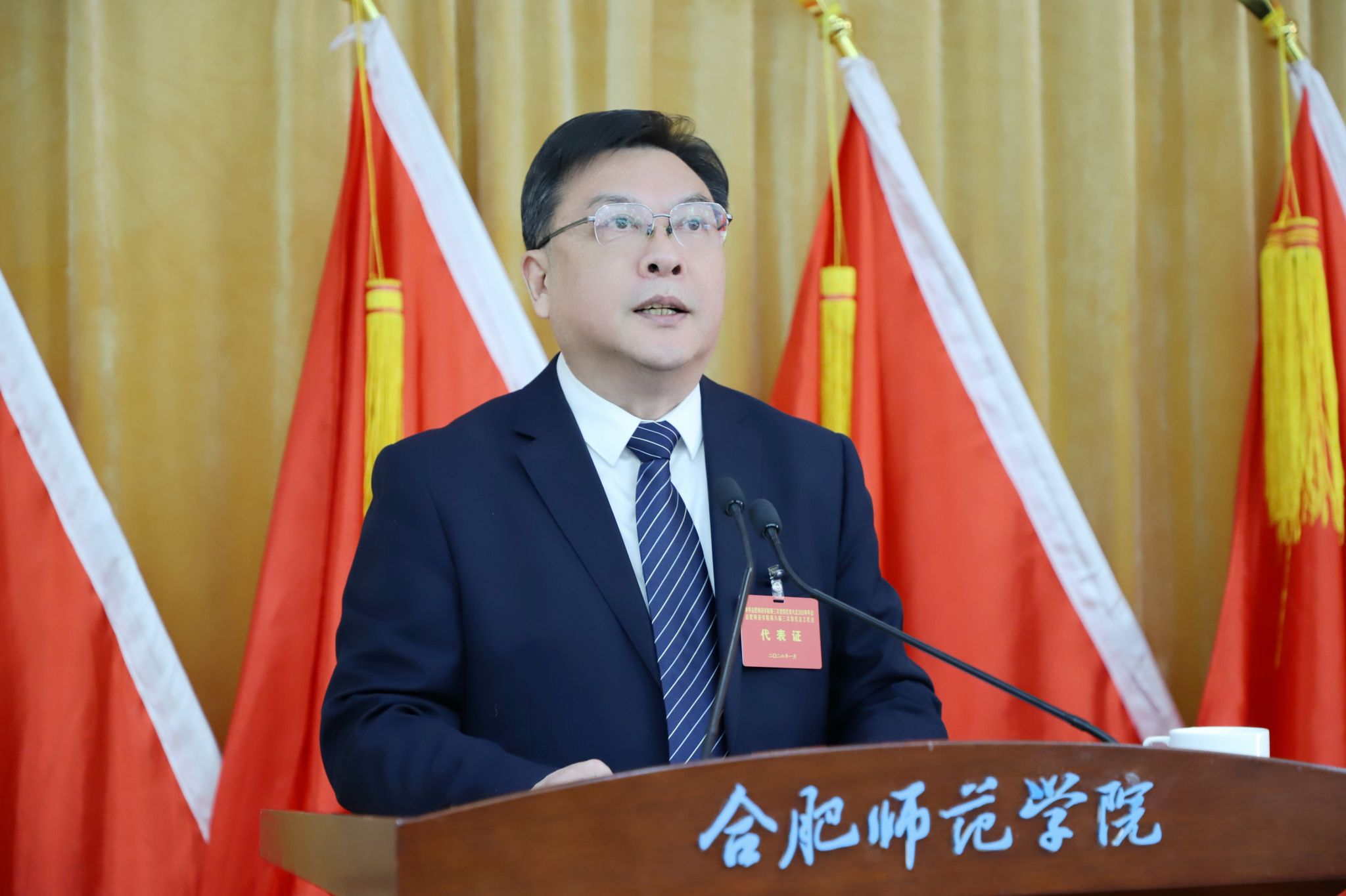 1月21日上午,中共合肥师范学院第三次党员代表大会2025年年会和合肥师范学院第八届三次教代会工代会在锦绣校区学术报告厅召开。校党委书记徐成钢,党委副书记、校长方东玲,党委副书记梁立昌,党委委员、副校长周端明,党委委员、副校长、组织部部长赵帮恚,党委委员、副校长李学俊,及全体党代会代表、教代会工代会代表出席大会,非代表的处级领导干部、省以上“两代表一委员”、民主党派基层组织负责人、专职辅导员、分工会主席列席大会开幕式。方东玲主持开幕式。