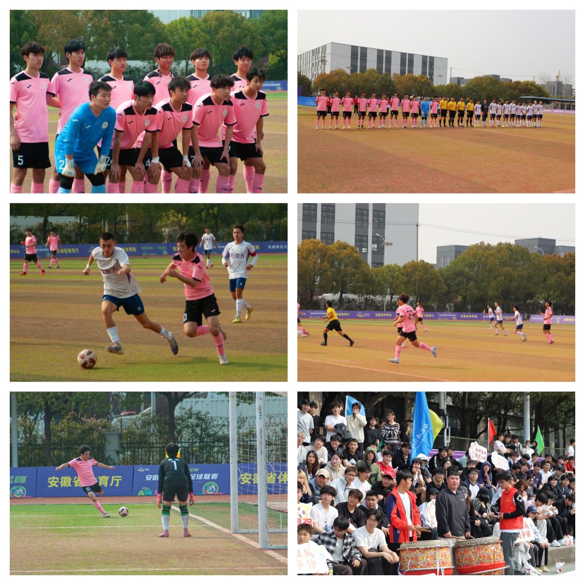 本次赛事由省教育厅、省体育局联合主办,以“爱足球、一起嗨”为主题,旨在搭建青少年足球人才选拔与培养的重要平台。赛事创新采用主客场双回合制,大学组赛事分为两个阶段开展。我校作为第一赛区和第三赛区承办单位,在第一阶段以五战全胜的战绩位列赛区第一,成功晋级八强。淘汰赛阶段,我校与安徽职业技术大学在1/4决赛相遇,本场为双方次回合主场较量。