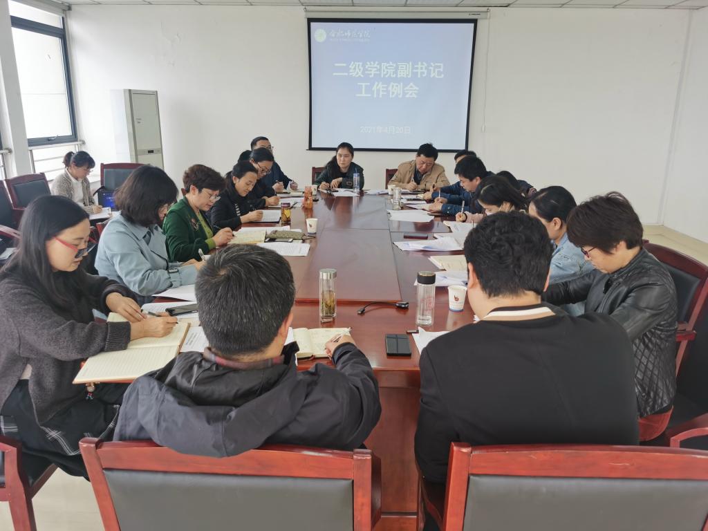 本网讯 为加强学生教育管理,保障校园安全稳定,4月20日下午,学院在锦绣校区行知楼810室召开二级学院党组织副书记工作会议,各二级学院党组织副书记、学生工作处处长陆涛、副处长刘艳及相关工作人员参加会议,会议由陆涛主持。