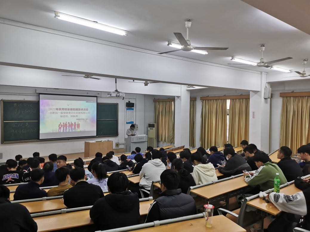 宣讲会上,徐还玲首先介绍了自己的创业公司:合肥加一体育青少年篮球俱乐部及其发展现状,场馆企业文化、教研团队、青少年篮球进阶课程体系以及校区独具特色的智能教务管理。随后,她介绍了公司目前的招聘岗位、薪资待遇,以及公司未来的发展规划,欢迎即将毕业的学弟学妹加入加一篮球俱乐部。