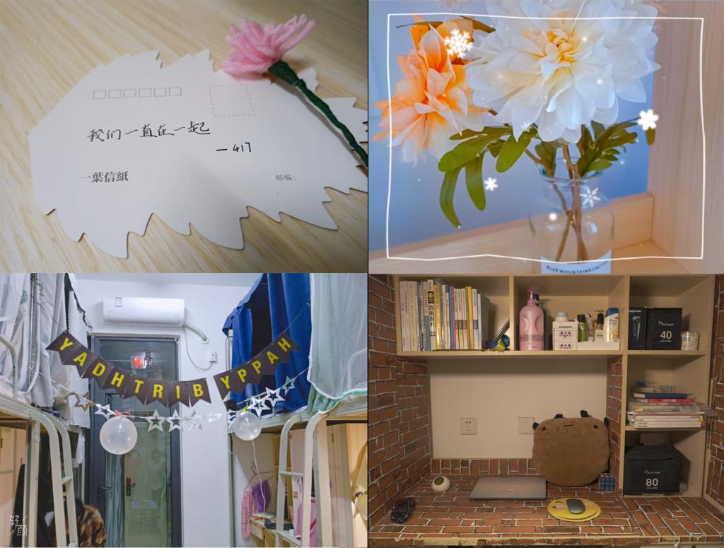 本次比赛的参赛寝室风格多元,创意独特。同学们精心布置的小角落,个性的艺术风格,无不彰显出对寝室环境美的向往。滨湖校区女生寝室三栋B326、B228、B216寝室采用精致的便利贴和贴画装饰书桌,既美观又充满趣味。