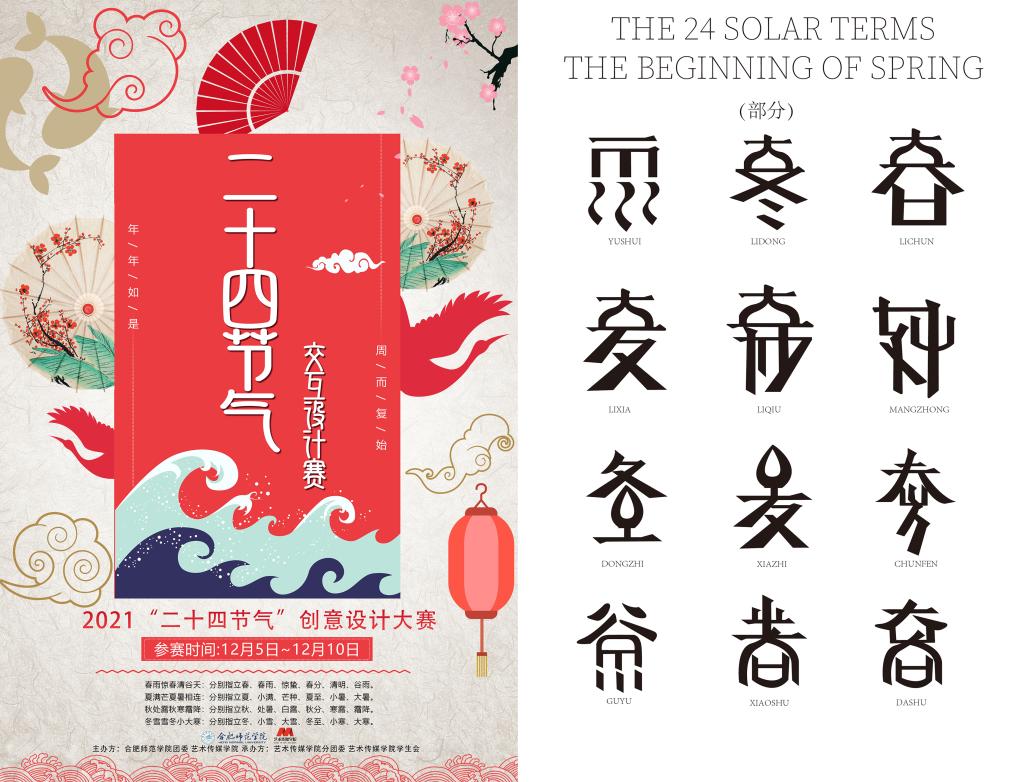 “二十四节气”文化作品设计大赛以艺术设计的形式,体现了合师学子保护、传承和发展中华优秀传统文化的自觉,既普及了二十四节气作为人类非物质文化遗产的知识内涵,又通过继承性地创作丰富了同学们的课余生活,使合师校园文化更加丰富多彩。(艺术传媒学院:潘文锦)