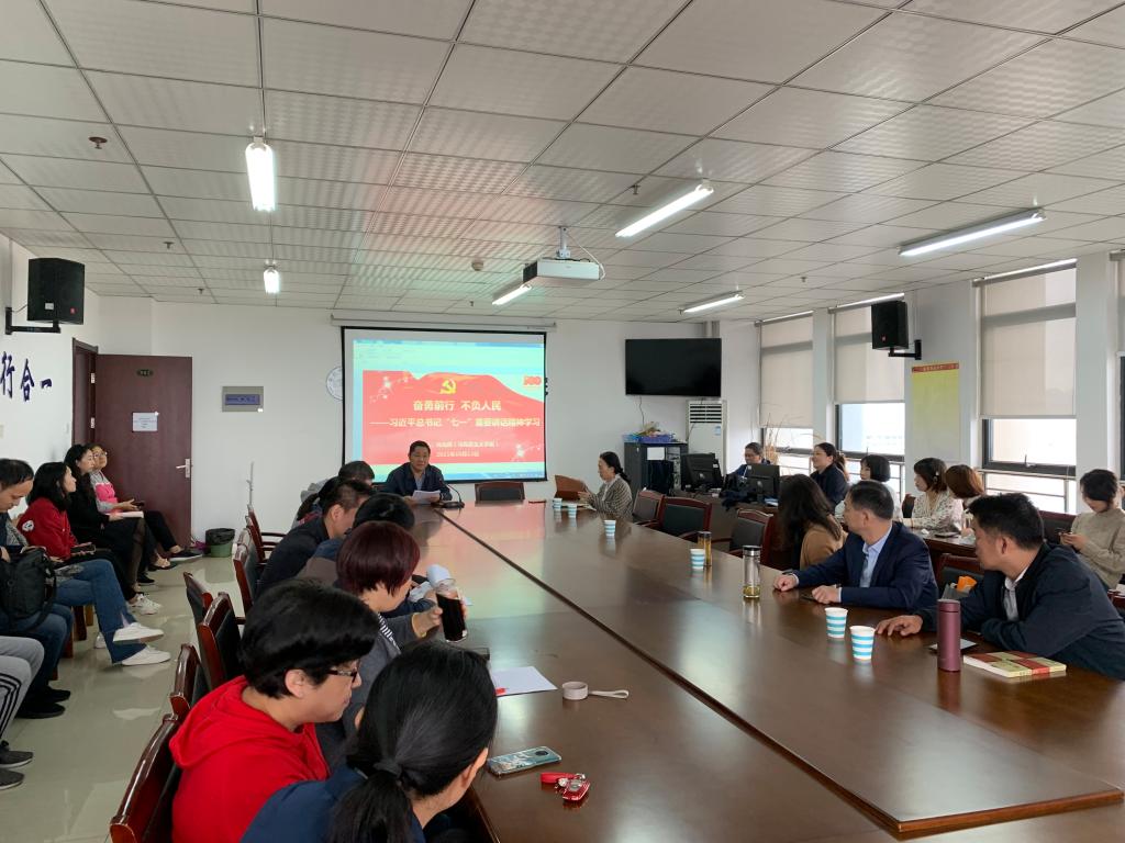 会议邀请了马克思主义学院何光辉博士作为主讲人。何老师从一种伟大精神、四个伟大成就、九个必须等三个方面阐述了习近平总书记“七一”重要讲话的丰富内涵;从百年奋斗的光辉历史、中国共产党成立的历史意义、中国共产党百年奋斗的宝贵经验三个方面介绍了习近平总书记“七一”重要讲话的重要意义。何光辉老师指出,教职工在学习“七一”重要讲话精神过程中要切实在学懂弄通做实上下功夫,要切实推动学习往深里走、往实里走、往心里走。