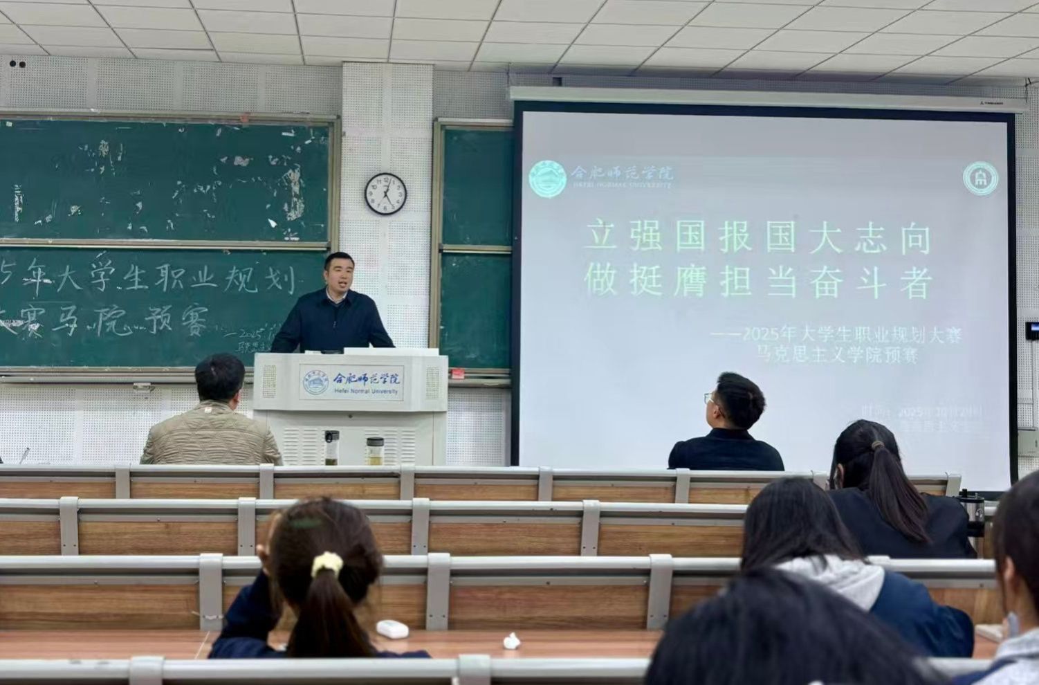 为不断提升学生职业素养与综合竞争力,10月29日下午,马克思主义学院在滨湖校区博学楼D101教室举办第十九届合肥师范学院大学生职业规划大赛院内选拔赛。