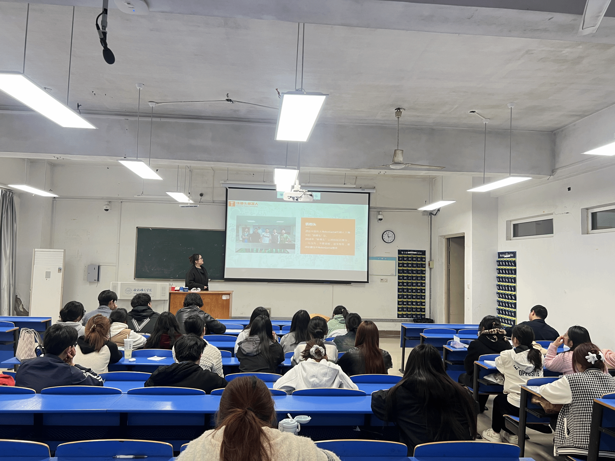 宣讲会上,胡蝶首先对企业代表的到来表示欢迎,并简要介绍了公司基本情况。她鼓励学生立足专业特色与职业发展规划,要主动把握校企对接契机,积极沟通、理性择业,提升求职针对性与成功率。随后,铁榔头教育校招负责人刘昶睿详细介绍了公司发展概况、业务领域及行业前景,重点围绕招聘岗位的工作职责、任职条件、薪酬福利及职业发展路径等核心内容进行宣讲。针对学生普遍关心的岗位晋升机制、培训体系、工作地点等问题,负责人逐一耐心解答,现场互动交流氛围浓厚。