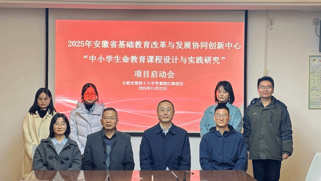 11月22日,安徽省基础教育改革与发展协同创新中心“中小学生命教育课程设计与实践研究”项目启动会在合肥市第四十八中学嘉陵江路校区顺利召开;该校校长助理冯斌、生物组教师、项目组成员及合肥师范学院生物与食品工程学院学科教学(生物)研究生和生物科学(师范)本科生代表参与启动会。会议由项目主持人生物与食品工程学院王占军教授主持。