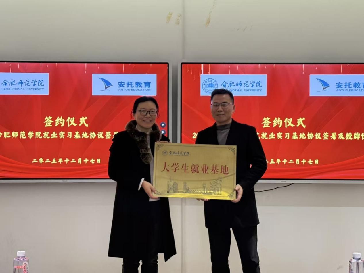 会上,双方正式签订实习就业合作协议,并举行“合肥师范学院外国语学院大学生就业基地”授牌仪式。随后,师生进行了实地参观,深入了解了这家综合性素质成长中心的教育理念与实践模式。