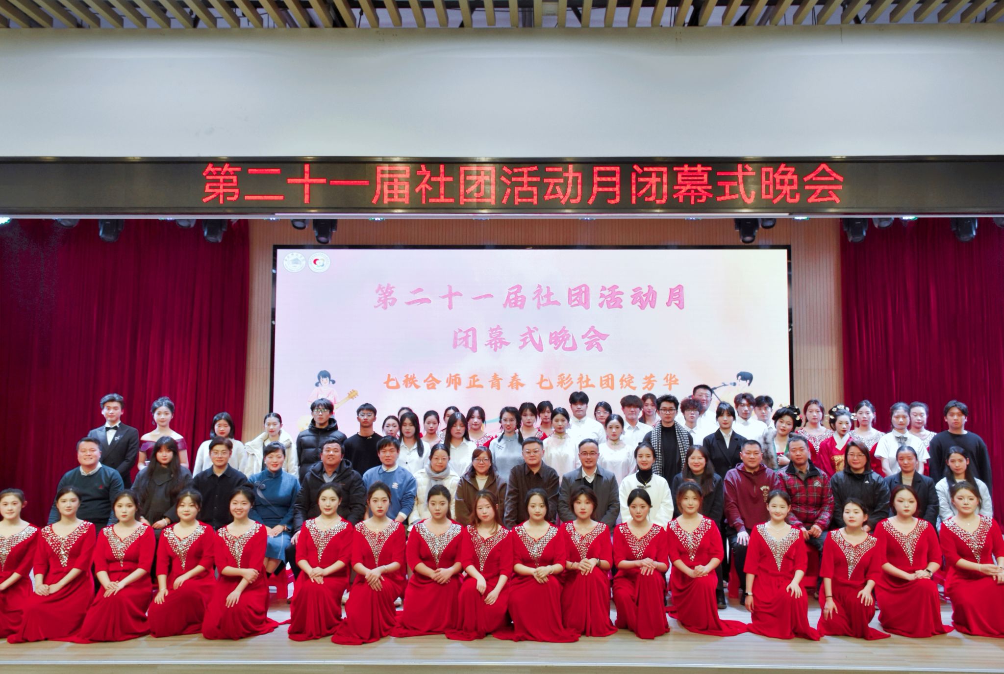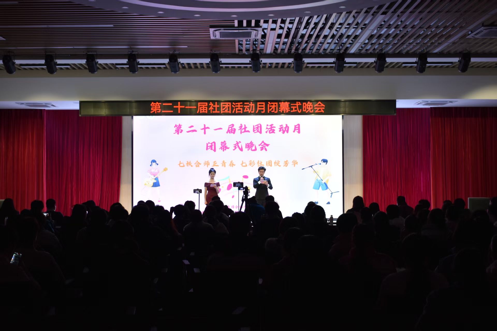 七秩合师谱新章,七彩社团绽芳华。12月17日晚,由校团委主办,学生社团文化服务中心承办的第二十一届社团活动月闭幕式晚会于锦绣校区大学生活动中心顺利举行。校团委书记刁文彬、副书记何磊以及相关学生社团指导老师及300余名同学到场观看晚会。