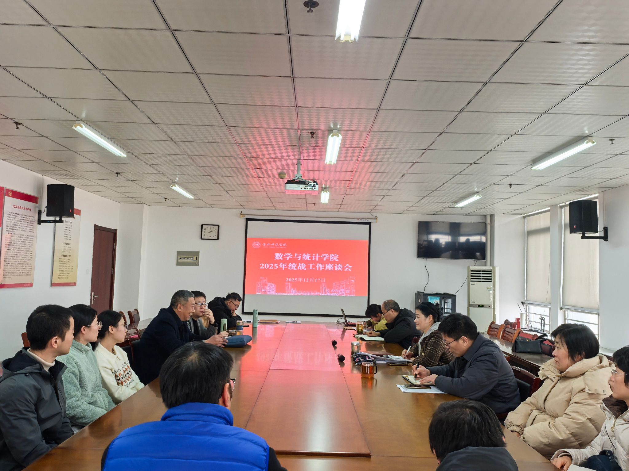 为深入学习贯彻习近平总书记关于做好新时代党的统一战线工作的重要思想,凝聚全院统战力量,助力高质量发展,12月17日下午,数学与统计学院在行知楼1102会议室召开了2025年度统战工作座谈会。学院领导班子成员、全体民主党派教师、群众教师等参加会议,会议由学院党委书记穆娟主持。