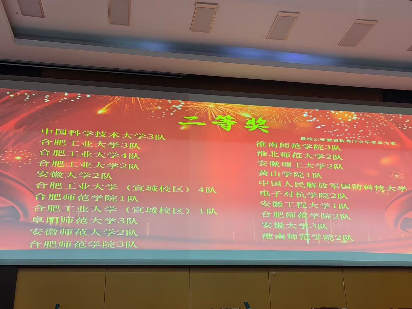 4月26日,由安徽省教育厅主办的第五届安徽省大学生物理实验竞赛(学术赛)在阜阳师范大学落下帷幕,我校选派三支参赛队伍均荣获安徽省二等奖,获奖名次及团队数量位居省内同类型高校榜首。