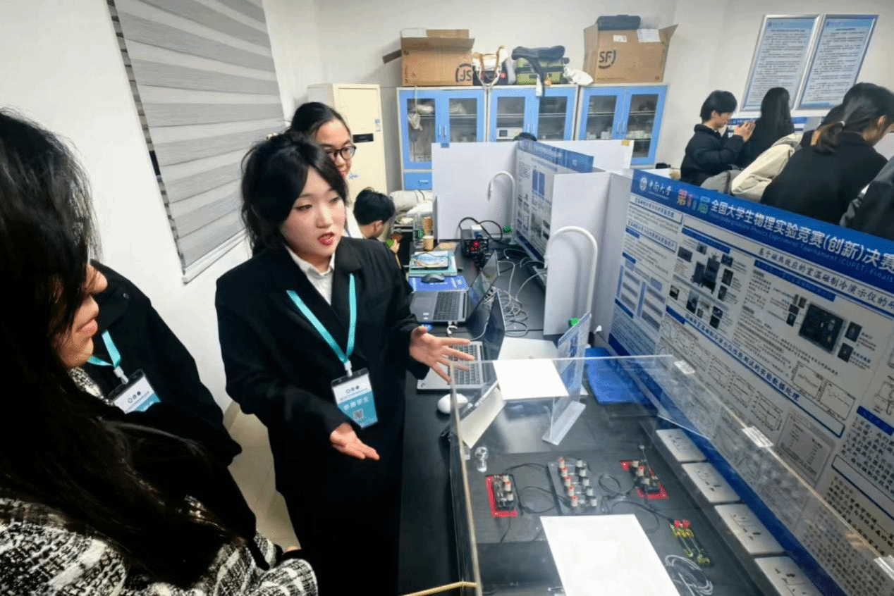 备赛期间,她每天同步成员们的进度,记录各课题遇到的难题,做好成员和老师之间沟通的“桥梁”。邢可爱会列出每个人的任务清单,明确时间节点,在赛前组织汇报演练,确保比赛现场不出差错。在一次重要赛事中,团队最初的设计模板存在漏洞。导师指出,必须尽可能减少人为因素的影响。她立刻组织团队成员召开研讨会,大家集思广益,对实验装置进行全面升级,实现机械自动化,参赛PPT前后打磨了三个完全不同的版本,每一个细节都反复推敲。最惊心动魄的时刻,是比赛初赛截止提交的前一周。邢可爱反复观看优秀作品视频,发现它们的共性是理论与实践的融会贯通做得非常棒。但此时距离截止日期只剩一周,时间极其紧迫。“要么不做,要么就做好。”她顶着压力,带领团队推翻了最初的思路,重新设计方案。那段时间,实验室的灯常常亮到深夜,团队成员各司其职、通力合作,最终在截止提交前的最后一刻,成功完成新方案。这份不畏挑战的坚持,让团队收获了理想的成绩。